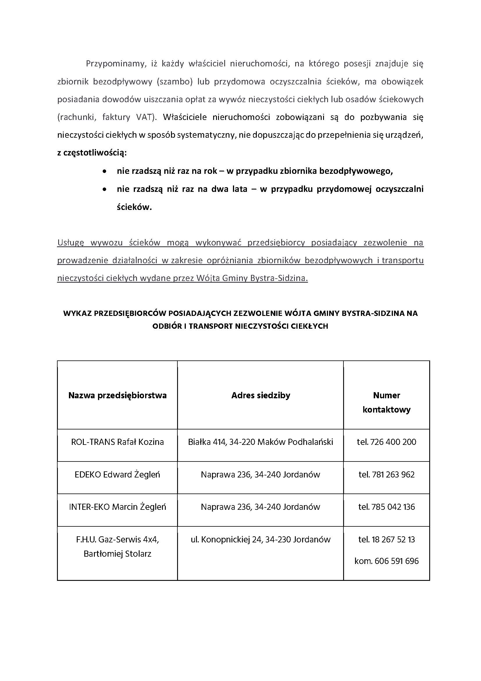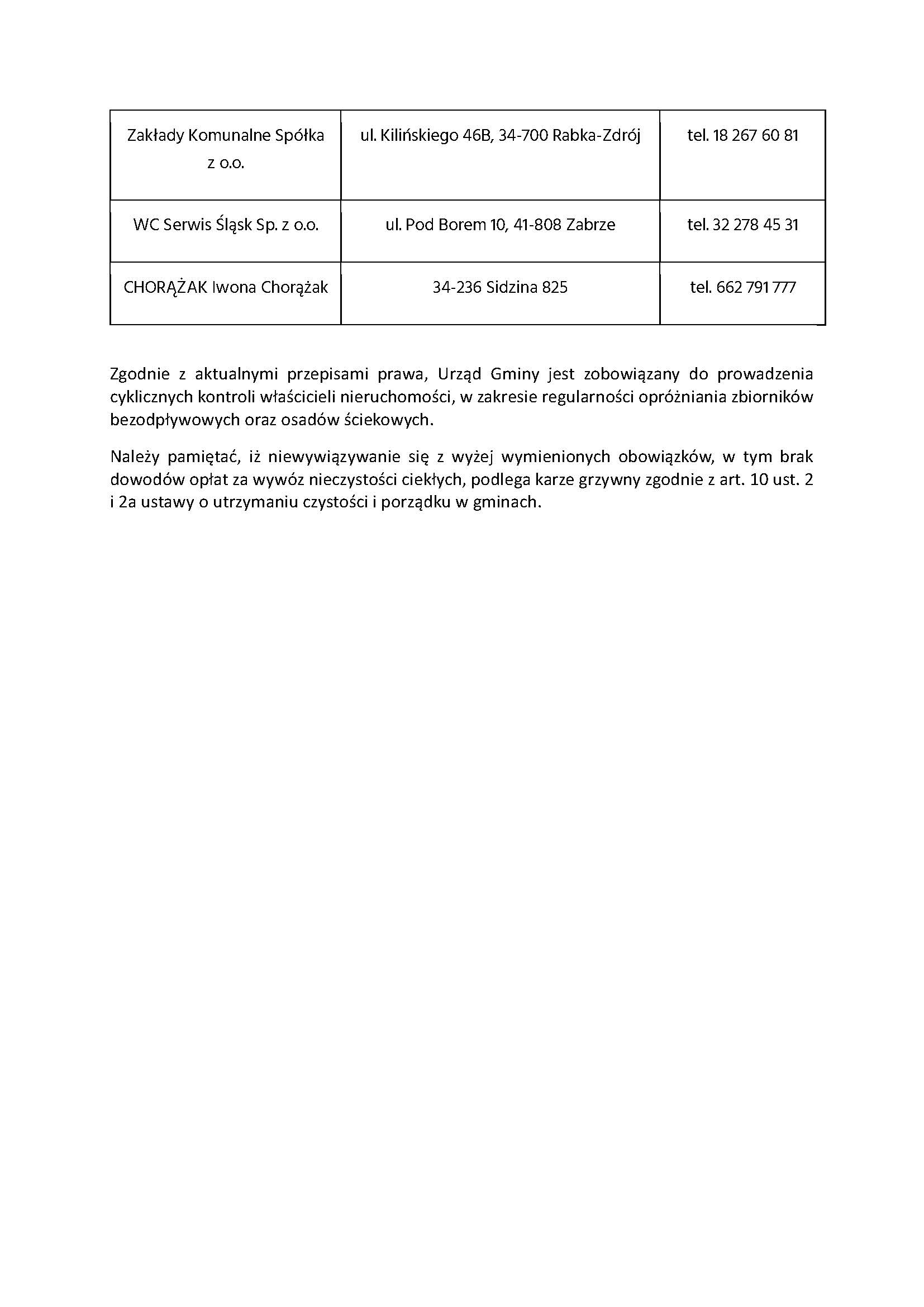 Obowiązek opróżniania zbiorników na nieczystości ciekłe