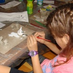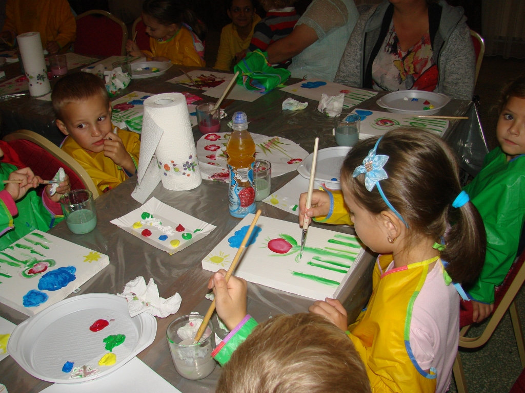 Warsztaty dla dzieci 6-letnich i ich rodziców w ramach projektu "Sztuka -Puka" realizowanego przez grupę nieformalą "Kreatywne" z Przedszkola Publicznego w Sidzinie.